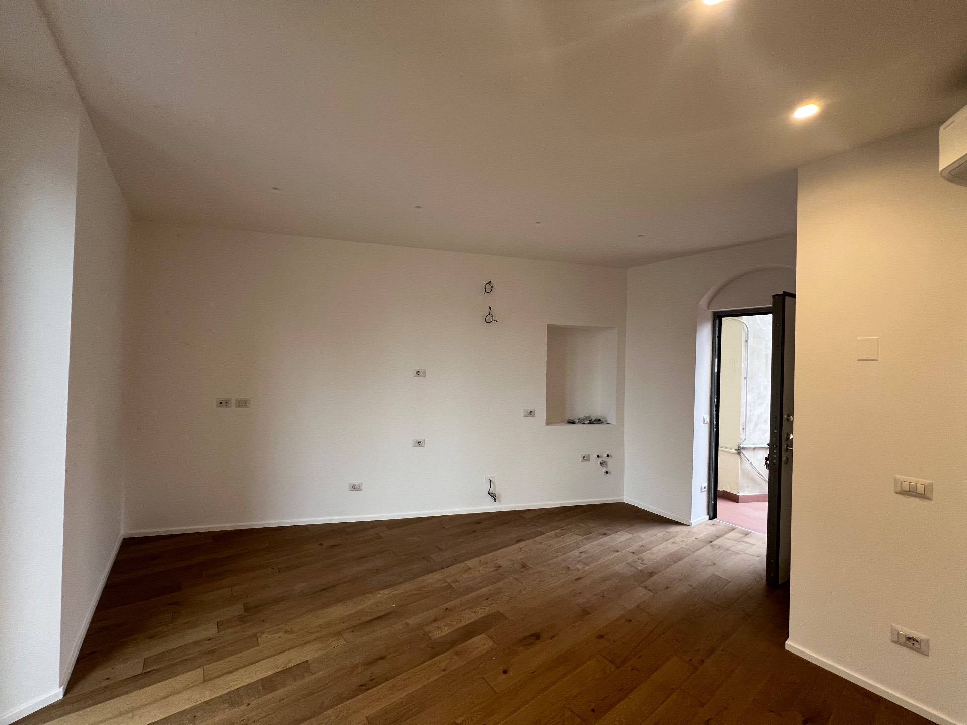 • Composizione: soggiorno con cucina a vista, camera da letto matrimoniale, bagno moderno e balcone